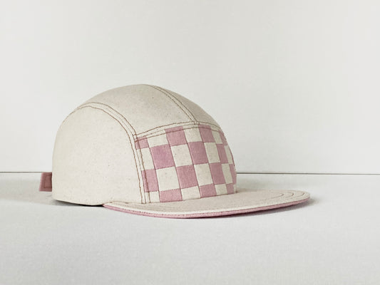 Naturally Dyed Camp Hat - Pink Checkerboard
