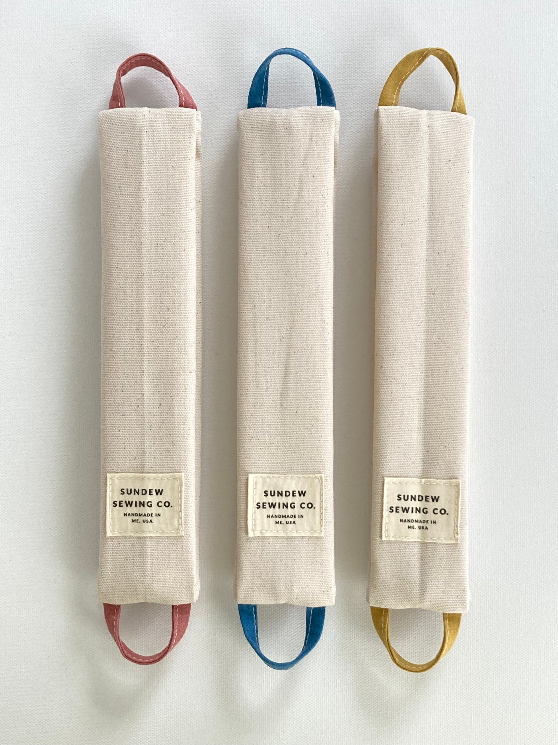 Sized to store pens, pencils, and then some. The extra length accommodates 8” knitting needles, and the whole pouch opens up like a baked potato so all your tools are super handy.