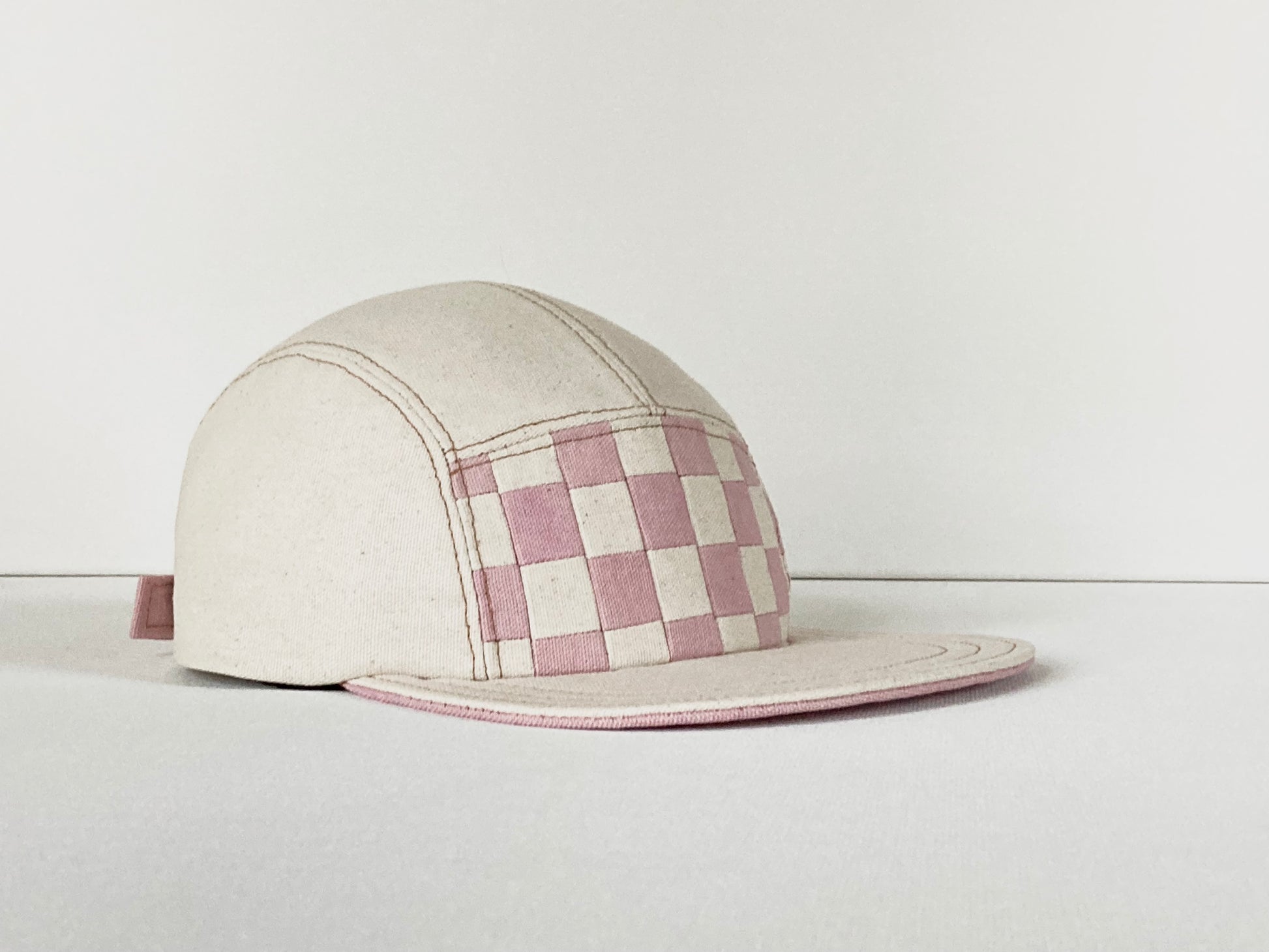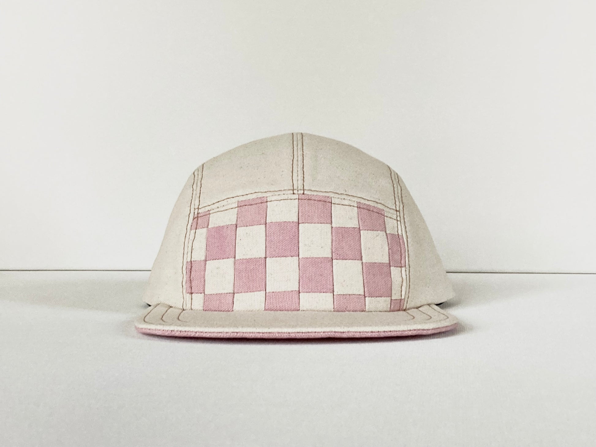 Naturally Dyed Camp Hat - Pink Checkerboard