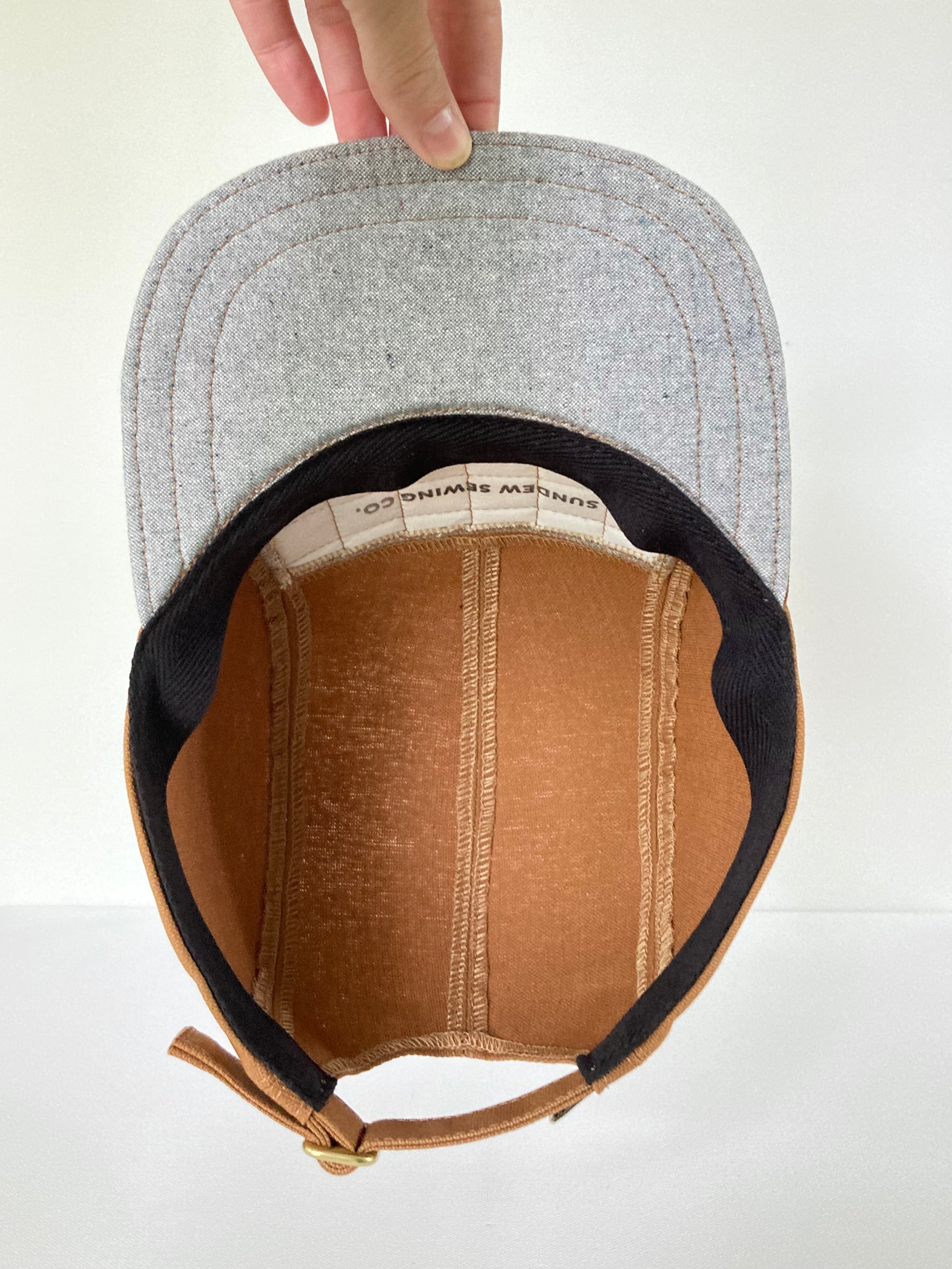 Made from durable 100% cotton duck cloth, with a quilted cotton/linen front panel and linen brim, and a 100% cotton twill tape sweat band. The back strap features a solid brass slide.
